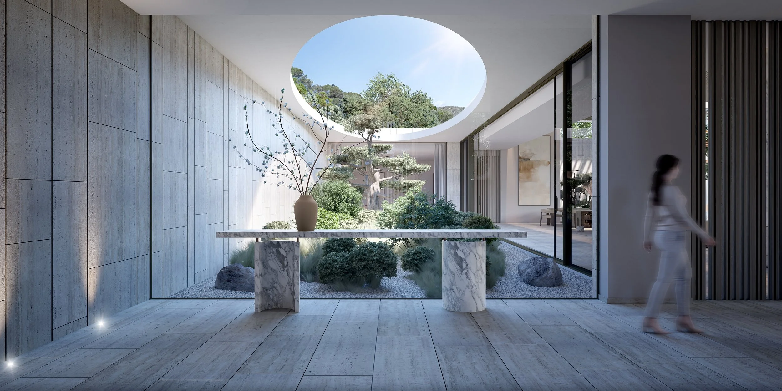 AQUA es una residencia de lujo diseñada con un enfoque en la sostenibilidad y la exclusividad, donde la arquitectura se integra profundamente en el entorno natural. Los elementos bioclimáticos, como patios y jardines, regulan de manera natural la temperatura y la ventilación, maximizando el confort y mejorando la calidad de vida. Inspirada en el agua, símbolo de vida y frescura, la estructura organiza sus espacios habitables en torno a espejos de agua que reflejan la luz y crean un microclima interior. Esta residencia combina materiales naturales y diseño humanista para ofrecer un hogar que prioriza el bienestar y el estilo de vida sofisticado.